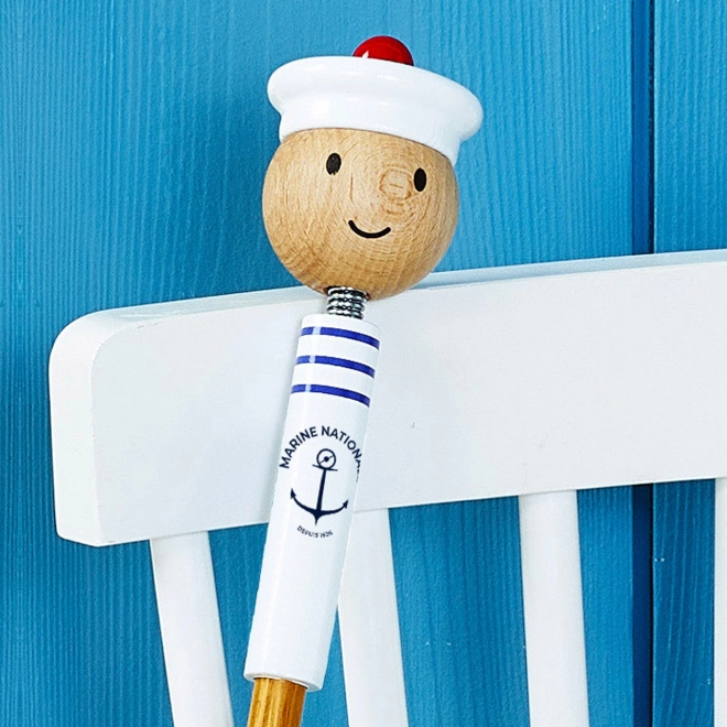 Stilski dječji kišobran s mornarskim motivima brenda VILAC razveselit će svakog malog i velikog avanturista. Zahvaljujući kombinaciji lagane karbonske konstrukcije, masivne drvene drške s elastično postavljenom glavicom i sigurnog sustava zatvaranja idealan je za šetnje na kiši. Proizvedeno u Francuskoj u suradnji s francuskom mornaricom.