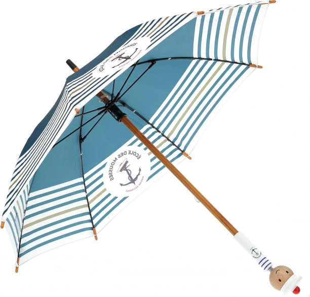 Sigurnost je na prvom mjestu: poseban mehanizam štiti dječje prstiće pri zatvaranju. Zahvaljujući suradnji s francuskom mornaricom, ovaj kišobran nosi autentičan mornarski karakter koji će zavoljeti i djeca i odrasli koji njeguju svoje unutarnje dijete.