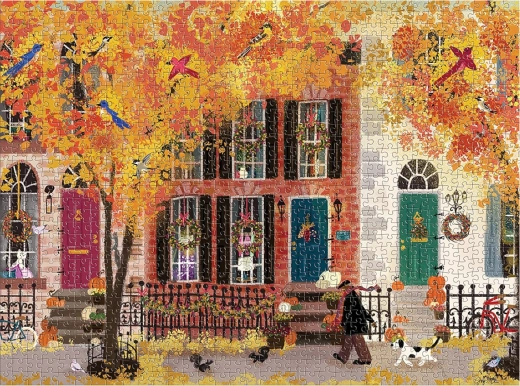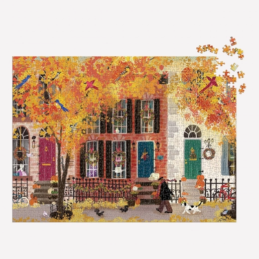 Dovršena puzzle prikazuje slikovitu gradsku ulicu u živim jesenskim bojama. Motiv Joy Laforme bogat je detaljima i odlično je prikladan za uokvirivanje i izlaganje.