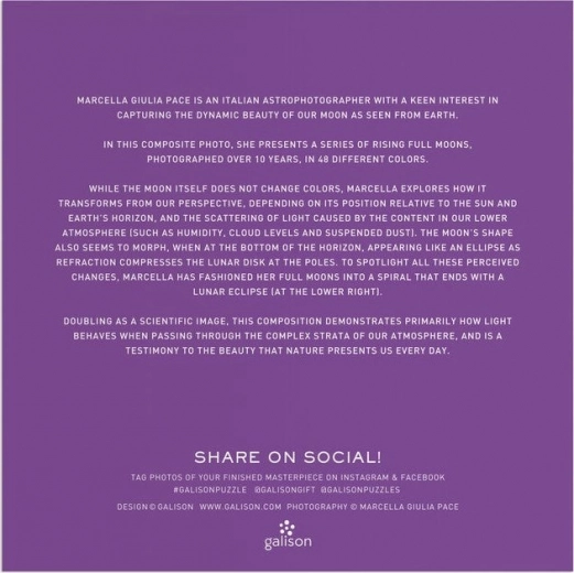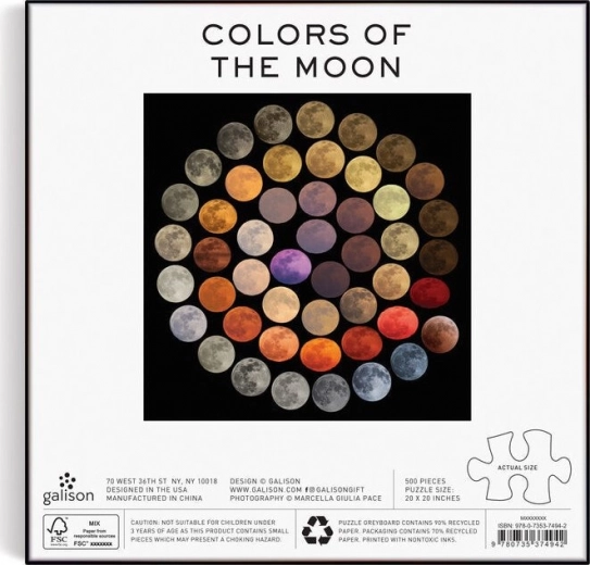 Otkrijte fascinantnu paletu boja Mjeseca na premium puzzlama Galison s 500 dijelova. Vrhunski mat tisak, reciklirani materijali i FSC pakiranje. Uključen je referentni poster.