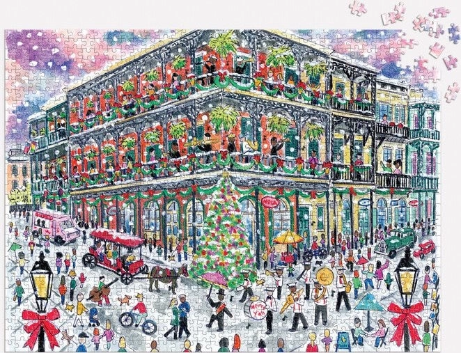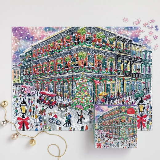 Puzzle od 1000 dijelova s motivom Božića u New Orleansu prema Michaelu Storringsu. Mat tisak, precizan izrez, reciklirani materijali, čvrsta FSC® kutija.