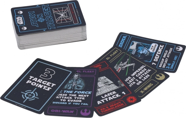 Uronite u svijet STAR WARS uz napetu kartašku igru u detaljno izrađenoj metalnoj kutiji u obliku Zvijezde smrti. Čeka vas brza strategija za 2–5 igrača, gdje ćete iskušati svoju domišljatost, kombiniranje i tempiranje. Uživajte u atraktivnim ilustracijama, brzom vremenom igre od cca 25 minuta i praktičnom kolekcionarskom pakiranju izrađenom od 100% FSC papira s biljnim tintama.