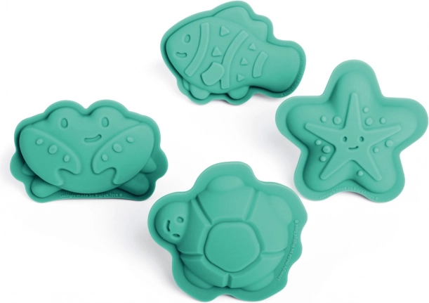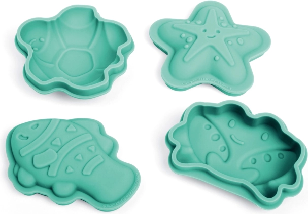 Set sadrži četiri različita silikonska kalupa u obliku raka, ribe, morske zvijezde i kornjače za maksimalnu kreativnost vaše djece.