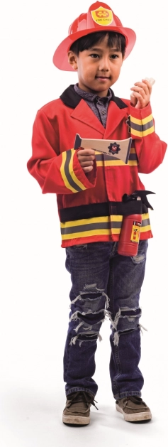 Pretvorite male junake u akciji s ovim realističnim vatrogasnim kostimom. U kompletu su crvena jakna, podesiva kaciga i bogata oprema za kreativnu igru. Jednostavno zatvaranje na čičak, sigurni materijali i detaljna izrada potiču maštu i role-play igre.