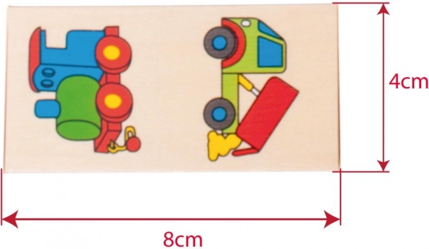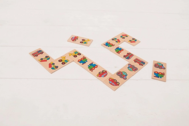 Šareno drveno domino s motivima prijevoznih sredstava idealno je za male dječje ručice. Nudi bezvremensku zabavu, uči prepoznavanju i koncentraciji, a svi se dijelovi spremaju u praktičnu drvenu kutijicu s kliznim poklopcem. Izrađeno od kvalitetnog, odgovorno dobivenog drva i ispunjava europske sigurnosne norme. 28 pločica, razvoj senzomotorike, sigurna i izdržljiva izrada.