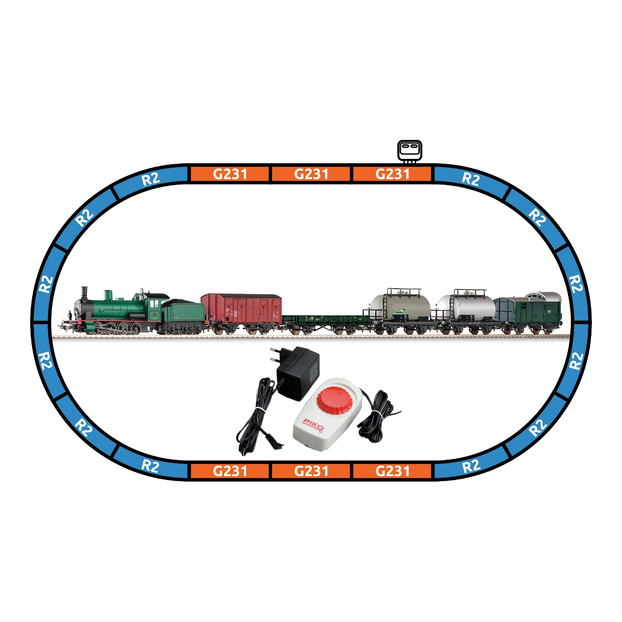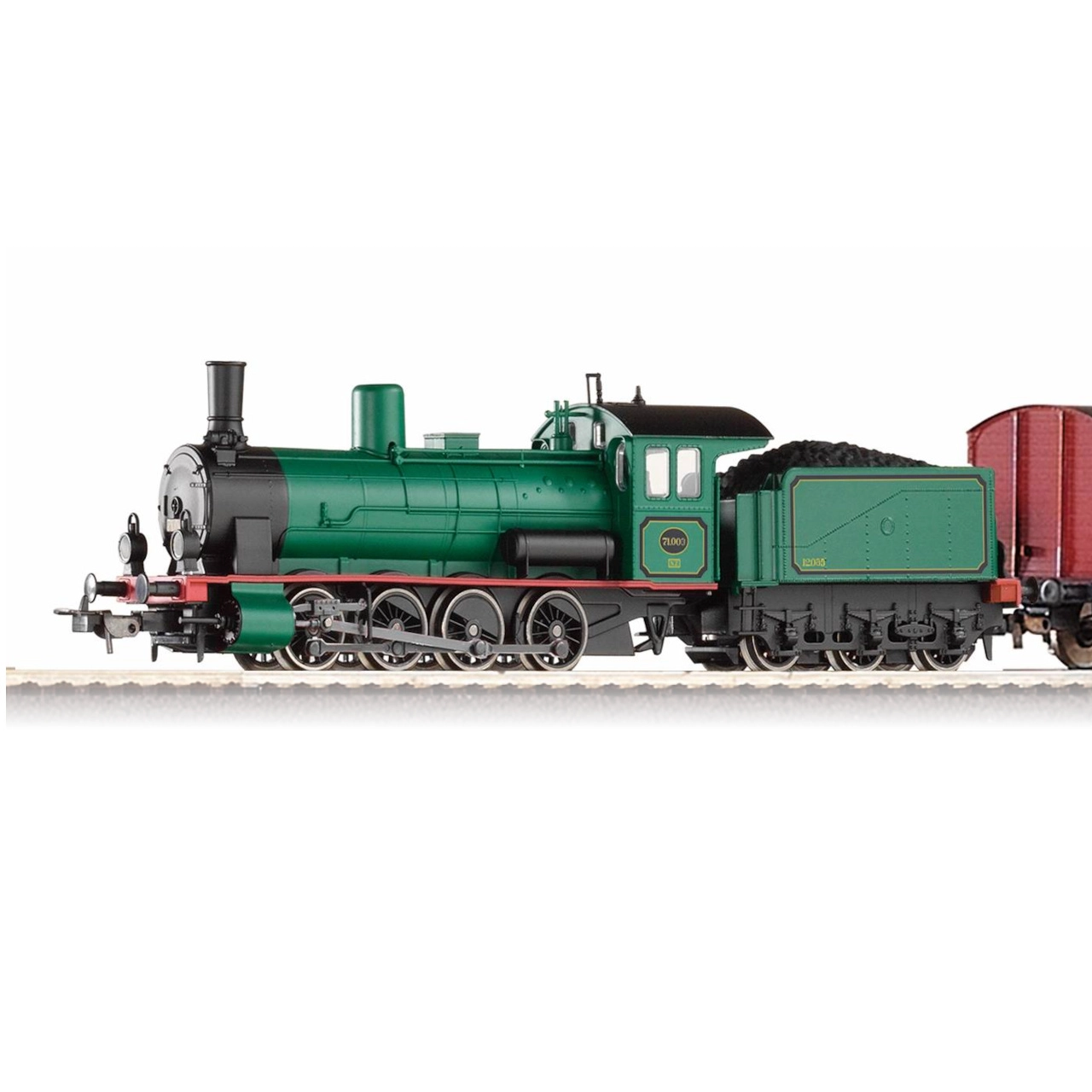 Uživajte u autentičnoj atmosferi parnih vremena s detaljno izrađenom lokomotivom Rh 71 (G 7.1) u epohi III i raznolikim sastavom teretnih vagona. Set nudi produženi oval tračnica s podlogom za stabilan rad i dugi vijek trajanja pri ponovljenom sastavljanju. Zahvaljujući sučelju NEM 652 lokomotiva se lako može opremiti digitalnim dekoderom i zvukom.