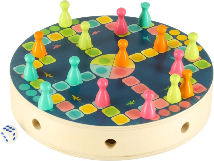 Dio seta je i jednostavna društvena igra s pješacima i kockom za vježbu brojanja i prvih pravila igre. Svi dijelovi imaju glatke rubove i izrađeni su od kvalitetnog drva s postojanim bojama, pa su ugodni za držanje i sigurni za svakodnevnu igru.