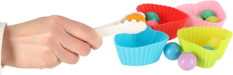 - Raznolike aktivnosti: ribolov s magnetom, hvatanje gusjenica, sortiranje u silikonske zdjelice, prenošenje pincetom, kretanje po igraćoj ploči.