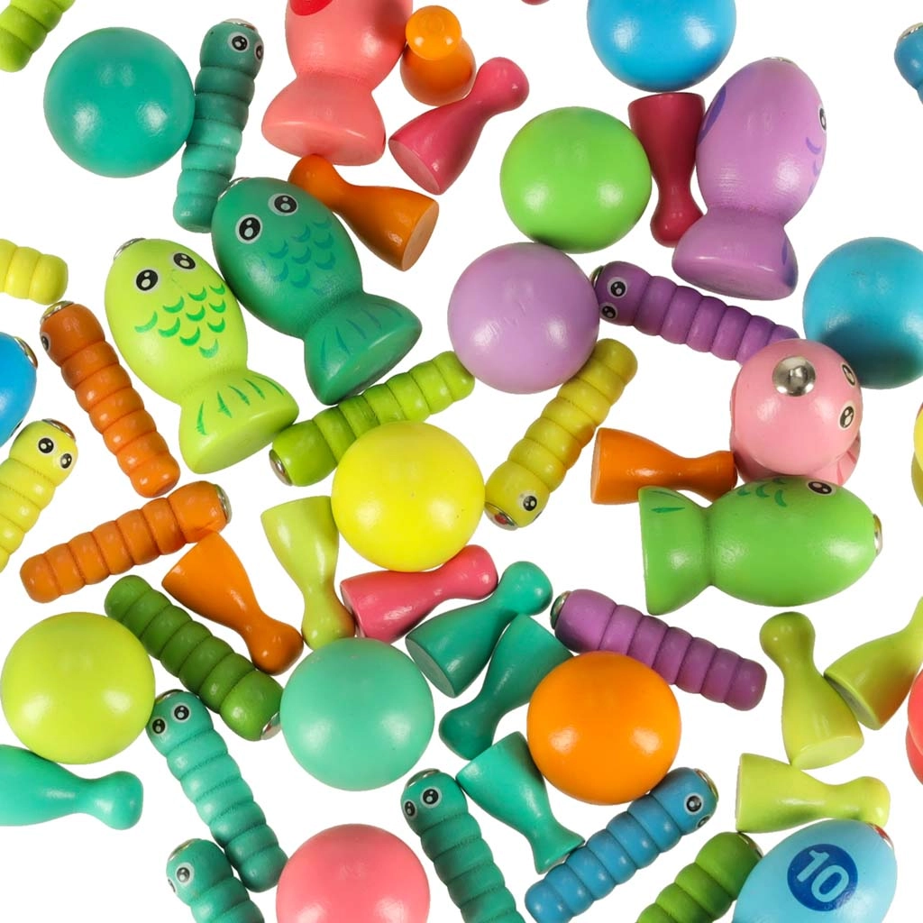 Zabavna i edukativna drvena igra za djecu od 3 godine koja spaja magnetski ribolov, hvatanje gusjenica, sortiranje boja i brojanje. Potiče finu motoriku, koordinaciju oko-ruka i logičko razmišljanje. Šareni, glatko brušeni dijelovi od sigurno lakiranog drva pozivaju na otkrivanje i zajedničku obiteljsku igru.
