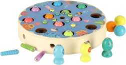 Pametna Montessori igra za najmlađe koja spaja zabavu i učenje. Djeca kroz ulov ribica magnetom, prenošenje elemenata pincetom i razvrstavanje prema bojama razvijaju finu motoriku, koordinaciju oko–ruka, logičko razmišljanje i računske vještine. Šareni drveni elementi i bogat set dodataka potiču samostalnu i zajedničku igru.
