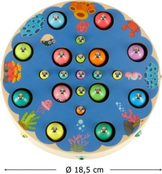 Ovaj svestrani Montessori set djeci nudi sate kreativne zabave te istodobno podupire njihov prirodan razvoj. Lovljenje ribica pomoću magnetskih štapova, premještanje kuglica i gusjenica pincetom ili štapićima te jednostavno brojanje s brojevima na ribicama aktivnosti su koje uvježbavaju strpljenje, preciznost i koncentraciju. Ugodne boje i ilustracije podvodnog svijeta potiču maštu i pozivaju na daljnju igru.