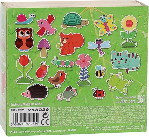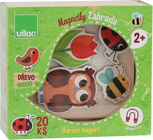 Otkrijte kreativne mogućnosti s Vilac drvenim magnetima s motivom vrta. Ovi izdržljivi i ekološki proizvedeni komadi nude neograničene mogućnosti za igru i dekoracije. Uživajte u prekrasnim, šarenim ilustracijama koje mogu ukrasiti hladnjak ili dječju sobu.