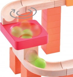 Sastavljajte, isprobavajte i otkrivajte! Staza za kuglice TRIX Vrtuljak i vrtlog donosi pametan sustav spajanja dijelova zahvaljujući kojem je izgrađena staza uvijek čvrsta i stabilna. Osnovni građevni dijelovi izrađeni su od izdržljivog drvoplasta, a same staze pretežno od masivnog drva s glatkom završnom obradom. Atraktivna kombinacija zasićenih boja i prirodnog drva oduševit će i djecu i odrasle.