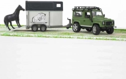 Prikolica za konje opremljena je stražnjom rampom i otvarajućim stražnjim i bočnim vratima, pa je ukrcaj i iskrcaj konja dječja igra. Cijeli je set izrađen od kvalitetne plastike, a zahvaljujući mjerilu 1:16 odlično se uklapa s ostalim modelima BRUDER.