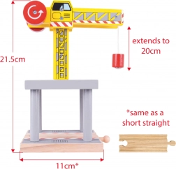 Dizalicu je lako kombinirati s ostalim drvenim željezničkim prugama na tržištu, što je čini univerzalnom igračkom.