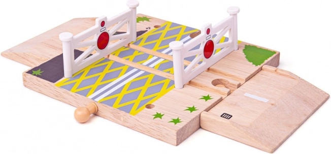 Ovaj fantastični drveni željeznički prijelaz idealan je dodatak za vaše setove igara. Djeca će uživati u postavljanju prijelaza duž gradova i cesta te naučiti kako sigurno prelaziti pruge.