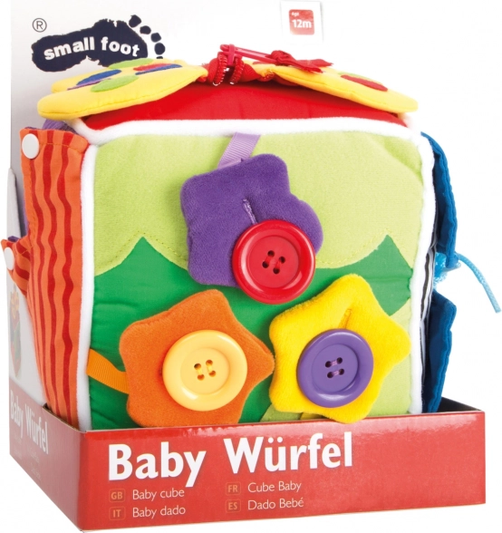 Plišana aktivna kocka od Small Foot je idealna igračka za razvoj fine motorike kod djece. Sadrži različite tipove zatvaranja kao što su gumbi, patentni zatvarači i vrpce, koji potiču taktilno istraživanje.