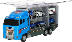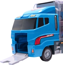 Plavi kamion ne samo da može prevoziti do 14 vozila, nego ga njegovi realistični detalji čine neodoljivom igračkom za djecu. Prozirna vrata i izbacivač dodaju uzbuđenje.