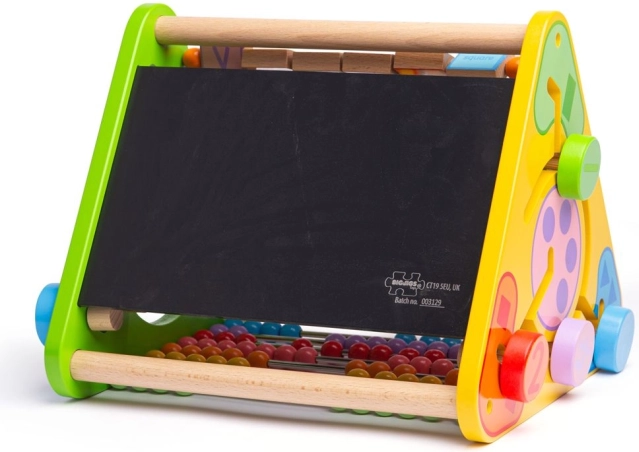 Ploča za crtanje, životinje i drugi rotirajući elementi zadržat će dječju pažnju te ponuditi raznoliku paletu aktivnosti u jednom stabilnom trokutu.