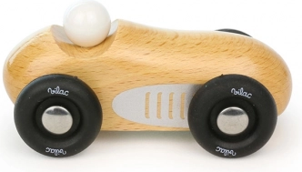 Priuštite djeci radost klasične igračke – mini trkaći auto VILAC od lakiranog drva u prirodnoj boji. Zahvaljujući izdržljivoj konstrukciji i gumenim kotačima vožnja je glatka i tiha, idealna za svakodnevnu igru. Minimalistički izgled prikladan je i kao stilska dekoracija.