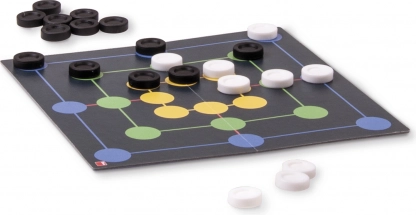 - obostrana ploča (šahovnica 8 × 8, ploča za mlin), 24 žetona (12 bijelih, 12 crnih), pravila