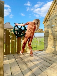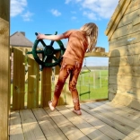 Svaki kutak pretvorite u palubu gusarskog broda! Veliko dječje kormilo Jumbo s promjerom 53 cm odmah privlači pažnju, a zahvaljujući zvučnom efektu pri okretanju uvlači djecu u igru. Odlično pristaje u vrt, na dječje igralište, penjalicu i u dječju sobu.