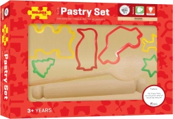 U pakiranju se nalazi sve za razigrane “pekaće” seanse: drveni valjak, daska, kuhača, špatula i 6 atraktivnih kalupa. Set je idealan za igru uloga, razvija kreativnost, potiče samostalnost i motivira djecu na pomoć u kuhinji. Dimenzije seta su 24 × 18 × 3,5 cm – idealna veličina za dječji kutak i kućnu kuhinju.