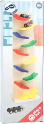 Ova kvalitetna drvena kaskadna kula ponudit će djeci beskrajnu dozu akcijske zabave. Dovoljno je staviti mali zglobni autić na vrh i promatrati kako se niz pojedine rampe spušta dolje stvarajući karakteristični „klap klap“. Igra tako potiče vid, sluh te koordinaciju ruke i oka.