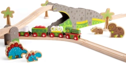 Priredite djeci originalan element za njihovu željezničku prugu – dinosaurovski most koji svaku vožnju pretvara u avanturu. Robusna drvena konstrukcija s motivom dinosaura omogućuje kompozicijama prelazak preko leđa i vožnju kroz tunel, što povećava raznolikost trasa i potiče kreativnu igru.