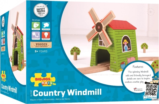 Proširite svoju drvenu željezničku prugu interaktivnom vjetrenjačom od Bigjigs Raila. Djeca mogu voziti vlak kroz mlin i okretati pokretne lopatice, čime razvijaju maštu, finu motoriku i koordinaciju. Kompatibilno s većinom drvenih željezničkih setova na tržištu, izrađeno od kvalitetnog drva i u skladu s europskim sigurnosnim standardima. Vlak i dodatna oprema nisu uključeni u pakiranje.