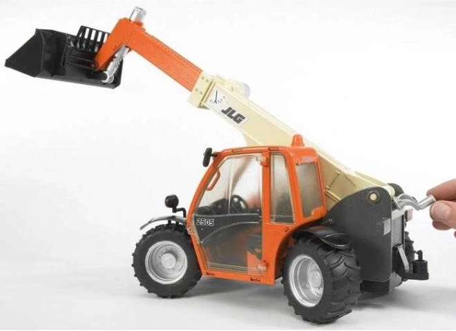 Teleskopska ruka podiže se ručicom na stražnjem dijelu stroja i može se izvući do duljine 40 cm. Prednja žlica je nagibna i lako zamjenjiva BRUDER dodatnom opremom (paleta, vitlo, vilice – BR2318). Kabina od nelomljivog polikarbonata s otvorivim vratima i vučno postrojenje upotpunjuju autentičan doživljaj upravljanja građevinskom tehnikom.