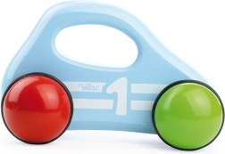 Stilski drveni autić VILAC u plavoj boji oduševit će male trkače i ljubitelje dizajna. Izrađen je od lakiranog drva, ima gumirana šarena kotača za tihi i glatki pokret te ergonomsku dršku za lako držanje. Odlično za razvoj fine motorike, sigurno od 12 mjeseci i zahvaljujući kvalitetnoj izradi ujedno i elegantna dekoracija. Proizvedeno u Francuskoj.
