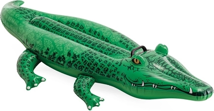 Nafukajući krokodil INTEX za djecu 3+. Izdržljiv PVC, čvrst rukohvat, nosivost 40 kg, dimenzije 168×86 cm. Odlična zabava za bazen, jezero i plažu.