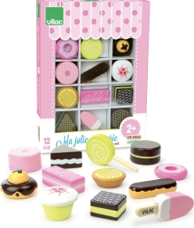 Priredite malim slastičarima i kuharicama radost u igri sa setom drvenih slastica VILAC. Šarene slastice i kolači izgledaju kao pravi, savršeno se uklapaju u dječju kuhinjicu i igru trgovine te ugodno razvijaju maštu i finu motoriku.