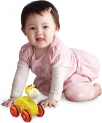 Ova vesela žirafa na kotačićima idealno je prvo vozilo za male ruke. Nagibom igračke dijete lako mijenja smjer vožnje, što prirodno razvija koordinaciju oko–ruka i potiče aktivnu igru. Gumeni prsteni na kotačićima osiguravaju glatko i tiho kretanje po različitim podlogama.