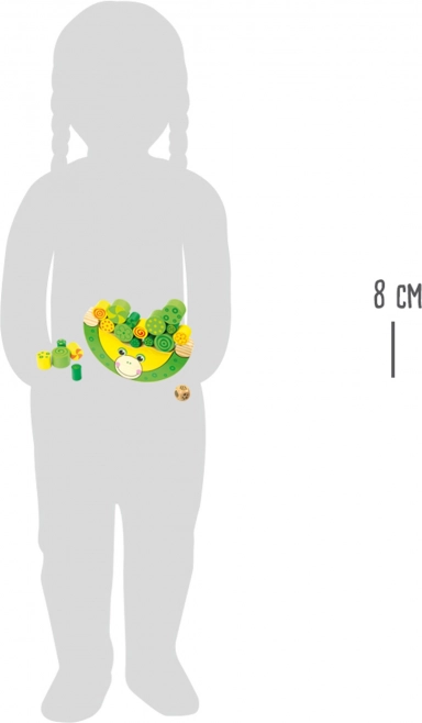 Zabavna drvena balansirajuća igra sa žabom za djecu od 3 godine razvija finu motoriku, logičko razmišljanje, strpljenje i koordinaciju oko–ruka. Šareni valjčići se stavljaju na ljuljajuću bazu prema boji bačenoj na kockici – izvrsna obiteljska aktivnost za 1–4 igrača. Izrađeno od 100% FSC certificiranog drva.