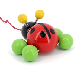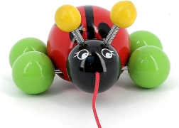 Ova klasična vučna bubamara od lakiranog drva oduševit će šarenim dizajnom, glatkom površinom i elastičnim ticalima koja se pri povlačenju veselo njišu. Zahvaljujući okruglim kotačima vožnja je glatka, a djeca prirodno vježbaju koordinaciju koraka i sigurnost u hodu.
