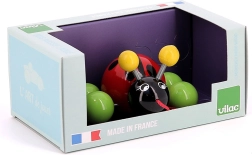 Slatka drvena vučna bubamara VILAC od lakiranog punog drva razveselit će svako dijete. Tijekom kretanja vesela se ticala na oprugama njišu, što djeci pomaže razvijati ravnotežu, koordinaciju pokreta i potiče aktivnu igru. Kvalitetna izrada i proizvodnja u Francuskoj jamče sigurnu i izdržljivu igračku za svaki dan.