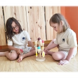 Drveni štand za sladoled Small Foot potiče djecu na kreativnu igru te im istovremeno pomaže razvijati kognitivne i komunikacijske vještine. Ovaj šareni set sadrži tri etaže s deset kuglica sladoleda i pet lizala, koja se mogu smjestiti u kružne otvore ili postaviti na postolje stalka.