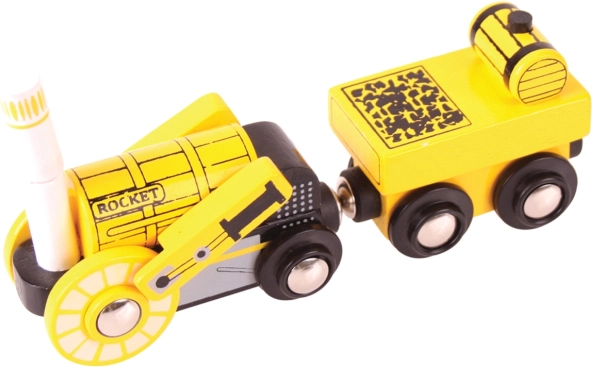Otkrijte čaroliju zlatnog doba željeznica s drvenom replikom lokomotive Rocket od Bigjigs Rail. Ovaj prekrasan model izrađen je od kvalitetnih i održivih prirodnih materijala, čime se osigurava dugi vijek trajanja i otpornost na habanje.