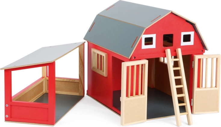 Velika drvena staja inspirirana američkim štalama nudi dovoljnu visinu i prostor za velike figurice, preklopne krovne dijelove za lak pristup i promišljene elemente poput verande, sjenika i priložene ljestve. Zahvaljujući jednostavnoj montaži prema uputama brzo je pripremite za igru. Dimenzije 32 × 24 × 25 cm, za djecu od 3 godine naviše.