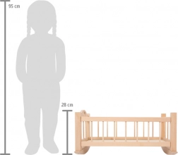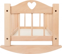 Ova kolijevka za lutke od prirodnog drva, lakirana prozirnim lakom, klasik je među namještajem za lutke. Prekrasan dizajn s izrezom u obliku srca, kao detalj pun ljubavi. Glavne značajke: potiče aktivno igranje i trenira socijalne vještine, stabilna konstrukcija, kvalitetna izrada, pogodna za vrtiće