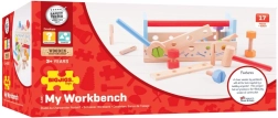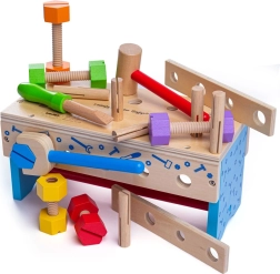 Igračka Bigjigs Toys donosi kvalitetan drveni stol s alatom koji na zabavan način podupire kreativne vještine i razvoj motorike kod djece. Sadrži čekić, ključ i razne vijke, koje djeca mogu lako koristiti za različite građevinske aktivnosti.