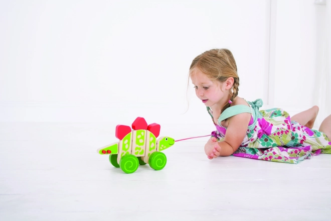 Igračka je izrađena od materijala iz odgovornih izvora i ispunjava aktualne europske sigurnosne norme. Vesele boje, ugodna drvena površina i simpatičan izgled stegosaurusa motiviraju djecu na aktivno kretanje i istraživanje svijeta.