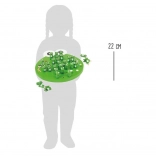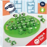 Šarena drvena ploča u obliku žabe s cvijećem i bubama potiče na igru i razvija maštu. Zahvaljujući preglednom rasporedu otvora djeca se lako snalaze.