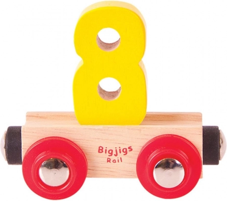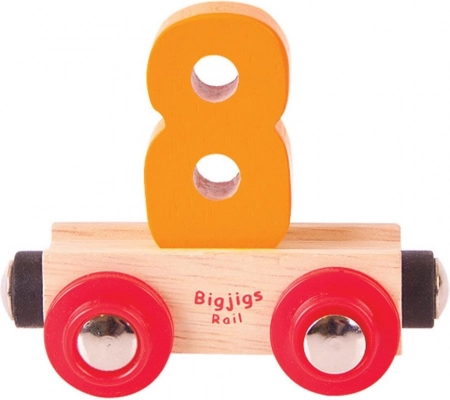Ovaj vagon s brojem 8 obogatit će svaku drvenu željezničku prugu zabavnim i didaktičkim elementom. Uklonjivi broj lako se može zamijeniti slovima ili drugim znamenkama pa djeca mogu slagati vlastita imena, natpise i brojeve. Zahvaljujući magnetnim spojnicama vagon se bez poteškoća povezuje s lokomotivama i vagonima omiljenih drvenih sustava.