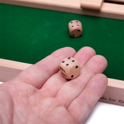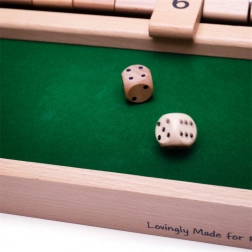 Otkrijte bezvremensku obiteljsku zabavu s igrom Shut the Box. Cilj je nakon bacanja dviju kockica preklopiti jednu ili dvije pločice tako da njihov zbroj odgovara rezultatu bacanja. Igra se dok više nije moguće preklopiti nove brojeve – preostali zbroj upisuje se kao kazneni bodovi. Pobjeđuje igrač s najnižim rezultatom.