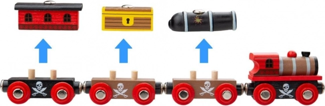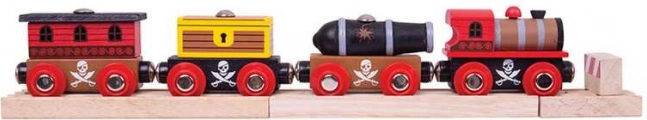 Piratički vlak od Bigjigs Rail idealan je izbor za male pustolove. Ovaj set sadrži lokomotivu i tri detaljno izrađena vagona s klasičnim magnetskim spajanjem. Kompatibilan sa svim drvenim željezničkim sustavima.