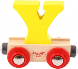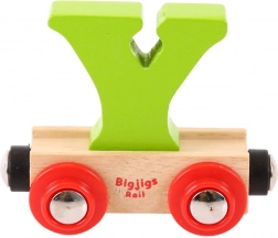 Drveni vagon sa slovom Y izvrstan je dodatak svakoj vlakopruzi. Zahvaljujući uklonjivom slovu, djeca mogu slagati imena, riječi ili poruke, razvijajući pritom jezične vještine i maštu. Magnetne spojke osiguravaju jednostavno povezivanje s drugim vagonima i lokomotivama.