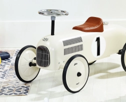 Krem guralica VILAC Vintage u metalik izvedbi odličan je izbor za razvoj ravnoteže i krupne motorike. Potpuno metalno tijelo osigurava stabilnost i izdržljivost, dok smeđe plastično sjedalo pruža udobnost tijekom vožnje. Djeca će voljeti realističan volan koji upravlja skretanjem prednjih kotača.